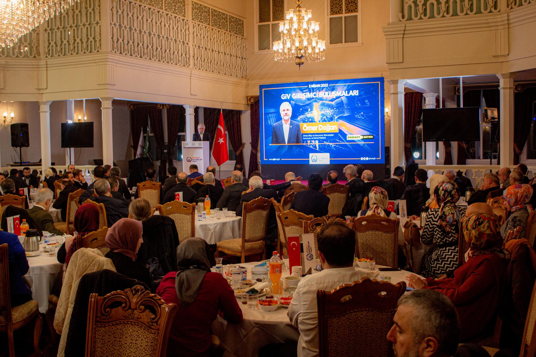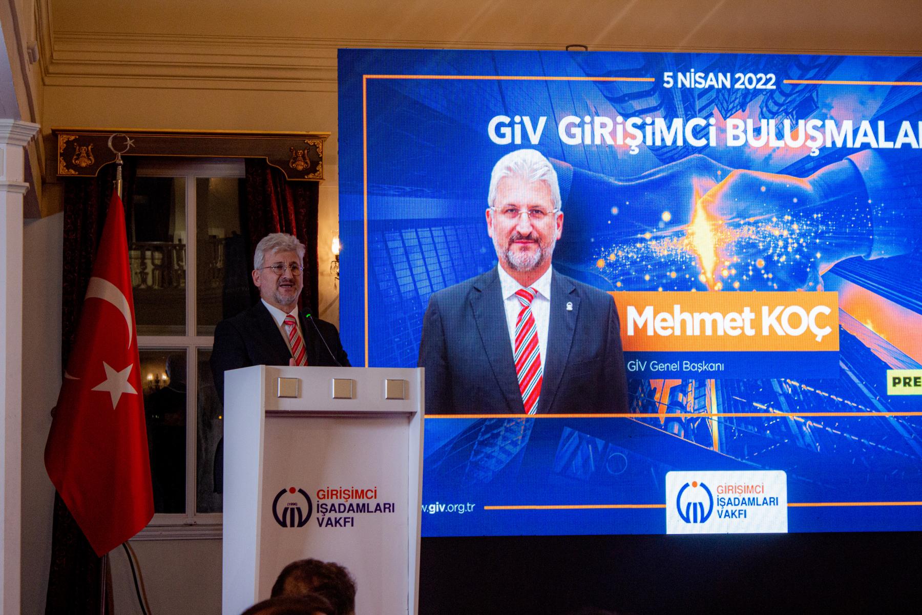 Girişimci İş adamları Vakfı’nın Eyüp Sultan Bahariye Mevlevihane’sindeki vakıf merkezinde gerçekleştirilen GİV Girişimci Buluşmaları, GİV Başkanı Sayın Mehmet Koç’un selamlama konuşmasıyla başladı.